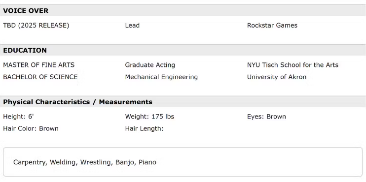 Despite fans trying to dissect Connor’s voice and compare it with Jason in the trailer, the resume doesn’t specifically say what his role is other than a ‘Lead’. Whilst many think he could be doing the performance capture for Jason, Connors’s may possibly be playing the enemy in the storyline. It’s rumoured from the leaks and internal sources that the storyline is based on love, a Bonnie & Clyde theme, so could the story include a nasty, jealous partner of Lucia who’s set out to get Jason out of the picture? Could Connors play a character who the pair owe money. At this point it’s anyone guess, but it’s interesting that his resume included a Rockstar Games 2025 release and has now been privatised.